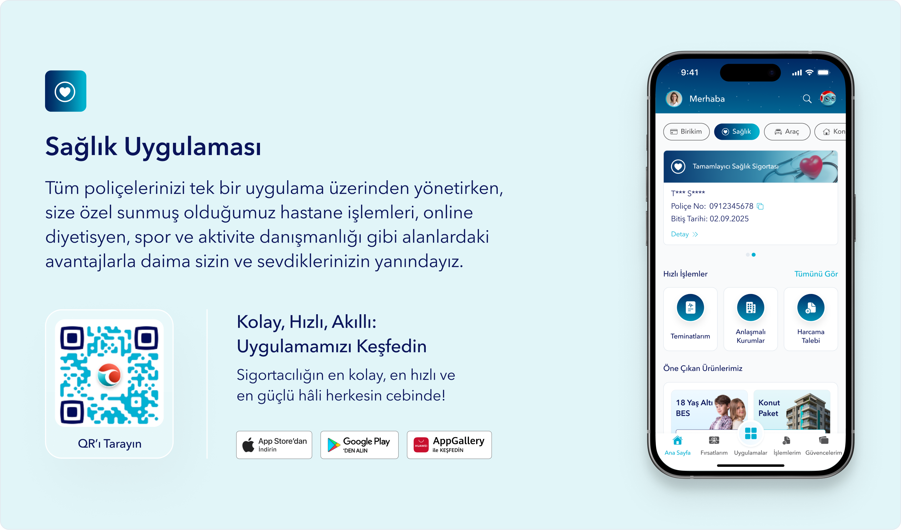 Kişisel verileriniz ve özel nitelikli kişisel verileriniz; Kişisel Verilerin Korunması Kanunu, Sigortacılık Kanunu, Özel Sağlık Sigortaları Yönetmeliği, Sigortacılık Destek Hizmetleri Yönetmeliği, Türk Ticaret Kanunu, Türk Borçlar Kanunu, Suç Gelirlerinin Aklanmasının Önlenmesi Hakkında Kanun hükümleri dikkate alınarak sigorta sözleşmesinin gereklerinin yerine getirilmesi, şirketin kanun ve mevzuattan kaynaklı yükümlülüklerinin yerine getirilmesi, Şirket ile girmiş olduğunuz her türlü ticari işlemlerde tarafınızın hak kaybına uğramaması adına size ait bilgilerin tespit edilmesi, tahsilat mutabakatlarının yapılması, provizyon süreçlerinin yürütülmesi, sağlık sigortası süreçlerinde anlaşmalı kurum ve kişilerden uzman görüşü alınması, kurumlardan sigortalıya ait sağlık bilgilerinin araştırılması ve temin edilmesi poliçelerin tanzimi ve yenileme işlemlerinin yapılması, sigorta şirketleri arasındaki geçiş işlemlerinin yürütülmesi, tazminat ödeme işlemlerinin takibi, risk kabul yapılabilmesi, aktüeryal hesaplamaların yapılabilmesi amacıyla ve poliçeden kaynaklanan hizmetlerin sunulması kapsamında; hizmet aldığı üçüncü kişilere, bulut saklama hizmeti veren şirketlere, yetkili acente/brokerlere, sigorta şirketlerine, banka, kargo şirketlerine tıbbi danışmanlık aldığı hizmet sağlayıcılara, ilgili tedarikçilere, iş ortaklarına, asistans firmalara, reasürör şirketlere , bağımsız denetim şirketine, Mali Suçları Araştırma Kurulu’na, Türkiye Sigorta ve Reasürans Şirketleri Birliği’ne, Sigorta Gözetim ve Bilgi Merkezi’ne yetkili kamu kurum ve kuruluşlarına, sağlık kuruluşlarına, görev aldığı şirketin işyeri hekimlerine, adli makamlara, aktüerlere, alternatif uyuşmazlık çözüm mercilerine, yetkili vekillere ve Şirket faaliyetlerinin gerektirmesi halinde Türkiye Sigorta Anonim Şirketi iştirakleri, ortak teşebbüsleri, hissedarı olduğu kuruluşlara ve tüm bunların bağlı kuruluşlarına ve yurt dışında bulunan broker ve reasürans şirketlerine aktarılabilmektedir. Kişisel verileriniz, ilgili mevzuatta belirtilen veya işleme amacının ortadan kalkmasına kadar geçecek olan makul süre ve herhalde kanuni zamanaşımı süreleri kadar muhafaza edilecektir.
